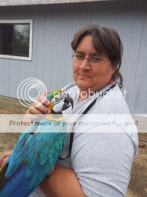 As many of you know I work with my birds to let me put things on them and over there heads. I got the harness 3 days ago. First day she wanted NOTHING to do with it. The next day if she wanted petted she had to put up with it on my hand. Today I started out to just do more but decided to push a little. This is how it worked out