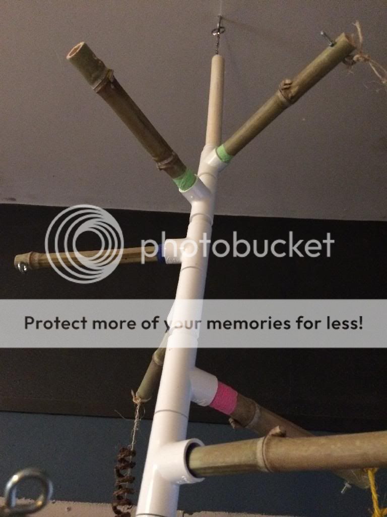 I was looking at my pvc stand and decided to add some wood perches to it, but couldn't figure out how exactly to do it. I finally came up with a solution.