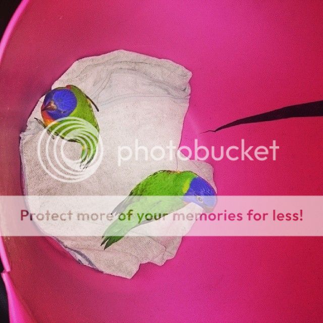 My friend on facebook just posted this picture saying that she was down in the paddock and there were these 2 baby lorikeets under the tree, and she said they fell out of their nest.. and she did the hashtag of 'wildlife warrior' :54: haha