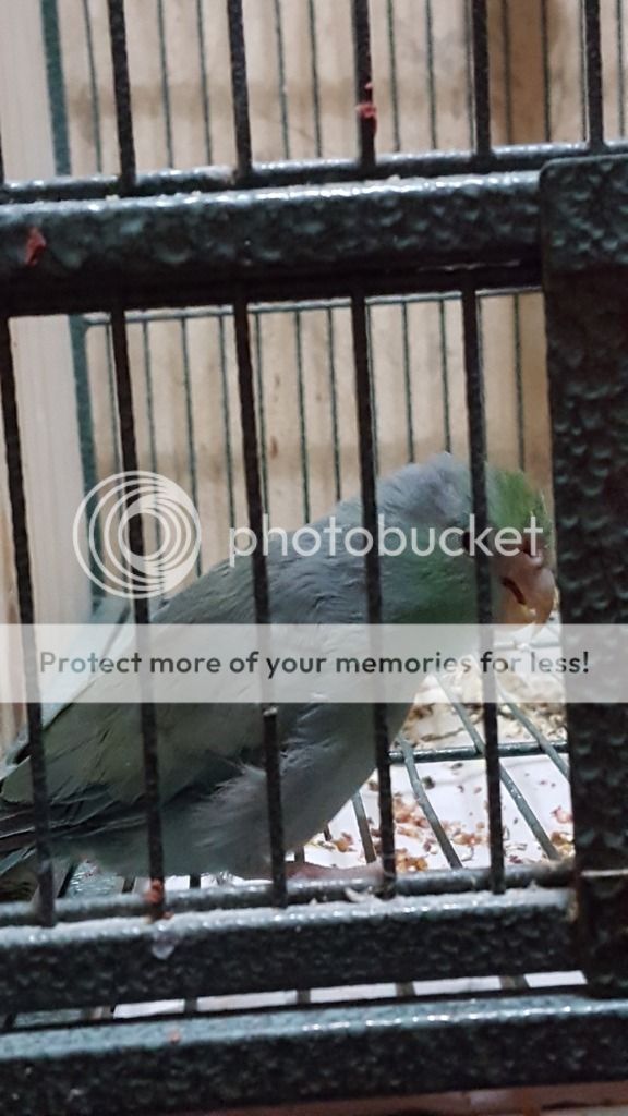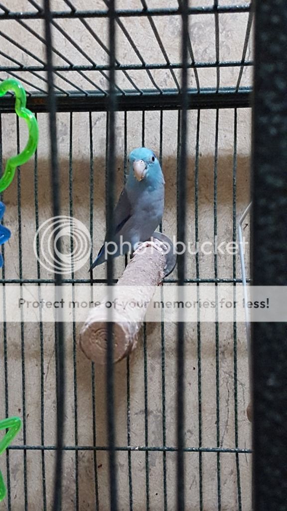 Finally is Sunny's mate, Psycho. And yes, I am the one that named them, and no, you can't judge me. If you ever met this little bird, I'm pretty sure you all would agree. She also happens to be my favorite of the four. She reminds me of a ratty little mutt dog, honestly. Her nares are much larger than normal, and she is a little scrapper. When I took her to the vet, her said the nares are nothing to be concerned about, it is an after affect of a respiratory infection she had when she was probably pretty young and they'll always be that way. She is very protective of her nest, you go anywhere near it, and she will fly across the cage and try to eat you. And although she tends to look either more blue or more green depending on the picture, she is actually a turquoise.
