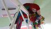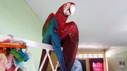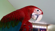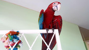 Last night I was really tired and I decided to retire early. My wife left Robert out sleeping on my worked desk. when I awoke this morning, oh the carnage! Destroyed my mouse, speakers, poop was everywhere. he went to town on the monitor. When I woke up and called for him, he screamed in shame and tried to hide. I reached out to touch him and he flew all over the house screaming out. I fed him, kissed him up and put him on the gate to dry off after I cleaned him up.