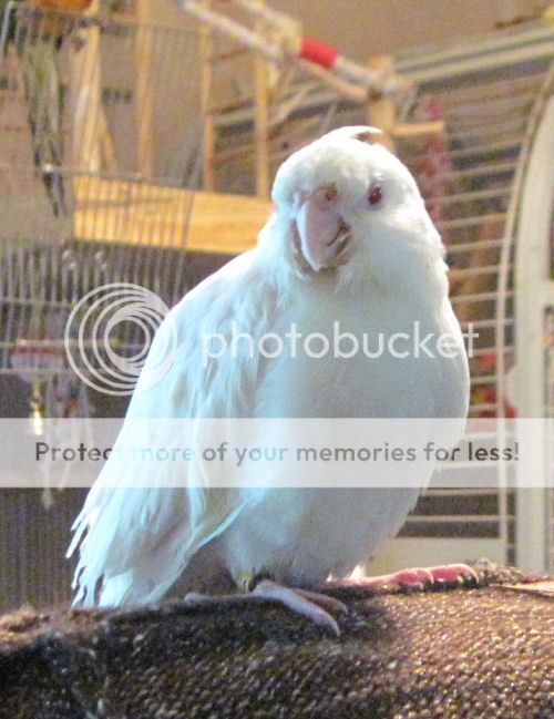 She died a few hours later. My husband knew I was upset about it and offered to get me another Cockatiel. I said I wanted a white one (spikey was pied pearl wf) and so we went back to where I bought spikey and one of her siblings was there, the white faced lutio I wanted. I did clear up some questions about spikey's genetics (although not needed any longer