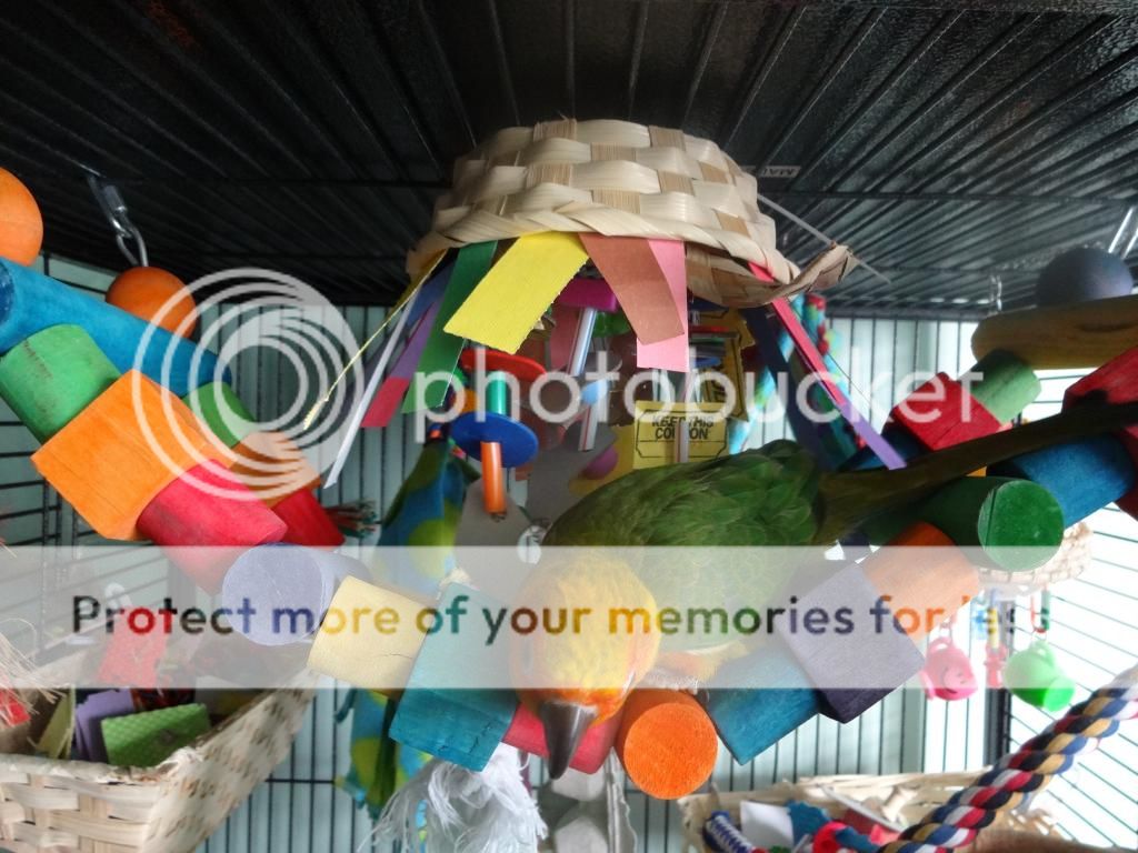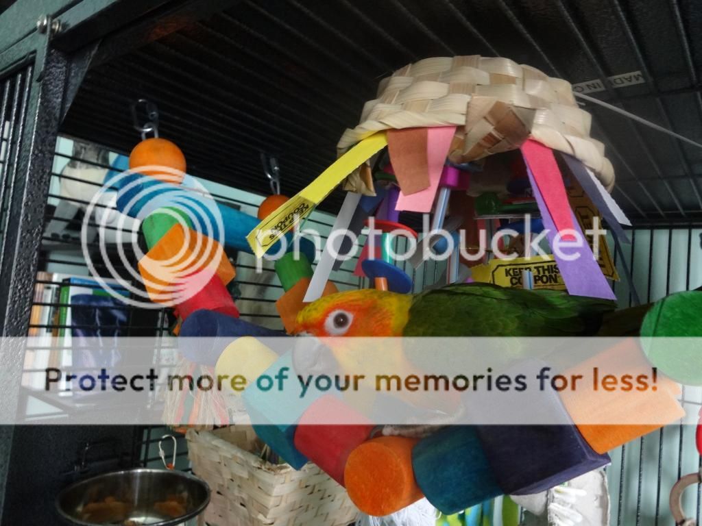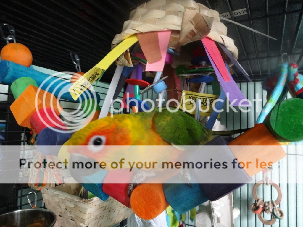 So instead of letting her have a hanging basket like I do all my conures I made this for her : )