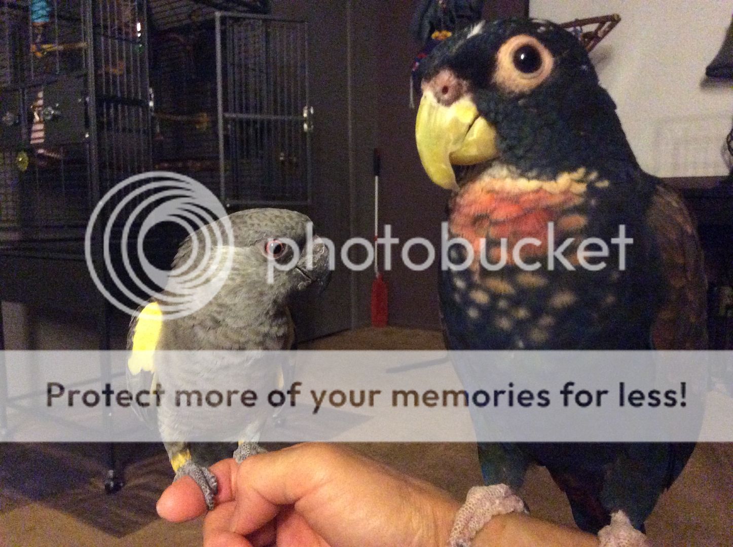 I haven't posted pics of the two friends in a while (I'll have to add pics a little later) but many of you know that Raven and Griffin are a bonded couple (both boys). Definitely an odd couple, Raven is a BW Pionus who's ancestors come from the high altitude mountain forests in parts of South America. Griffin is a Ruppell's parrot from the plains of South Africa. An uncommon relative of the Senegal and Poicephalus family. Raven is twice as large and heavy as Griffin is, but they are a couple nonetheless.