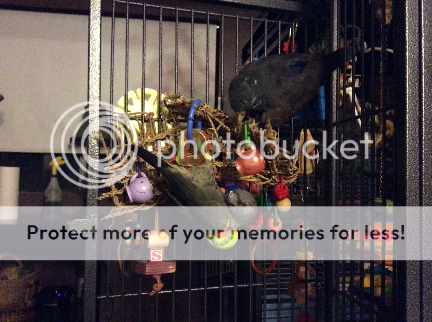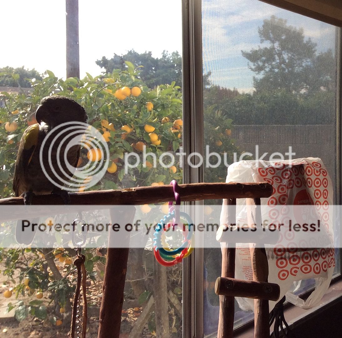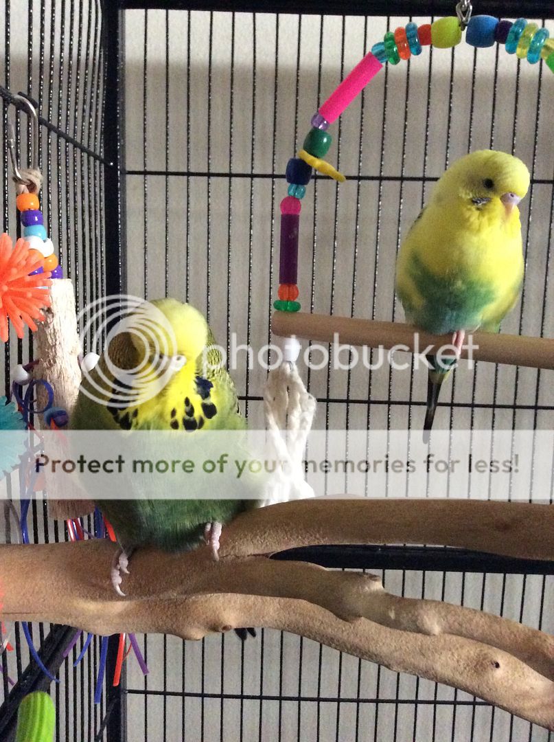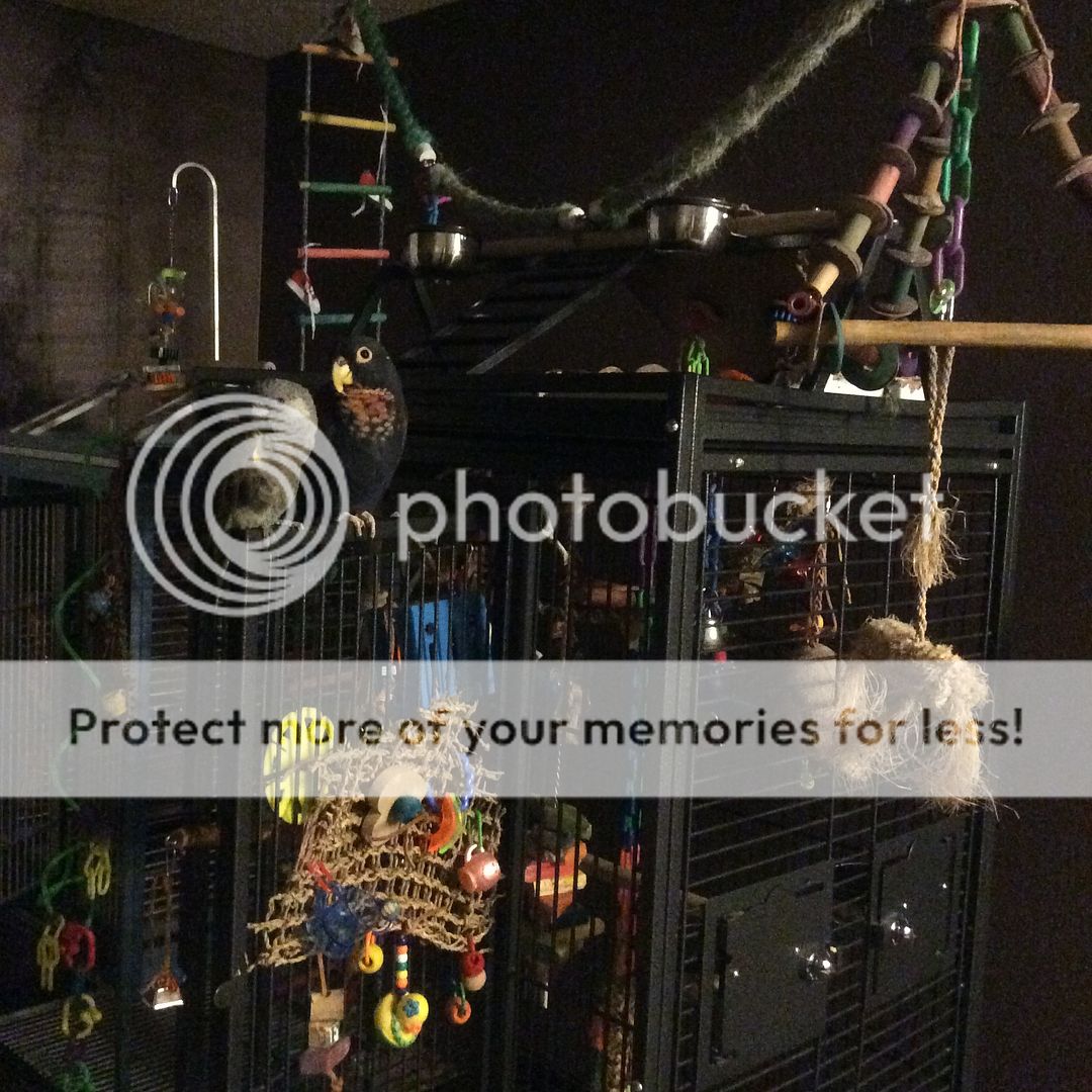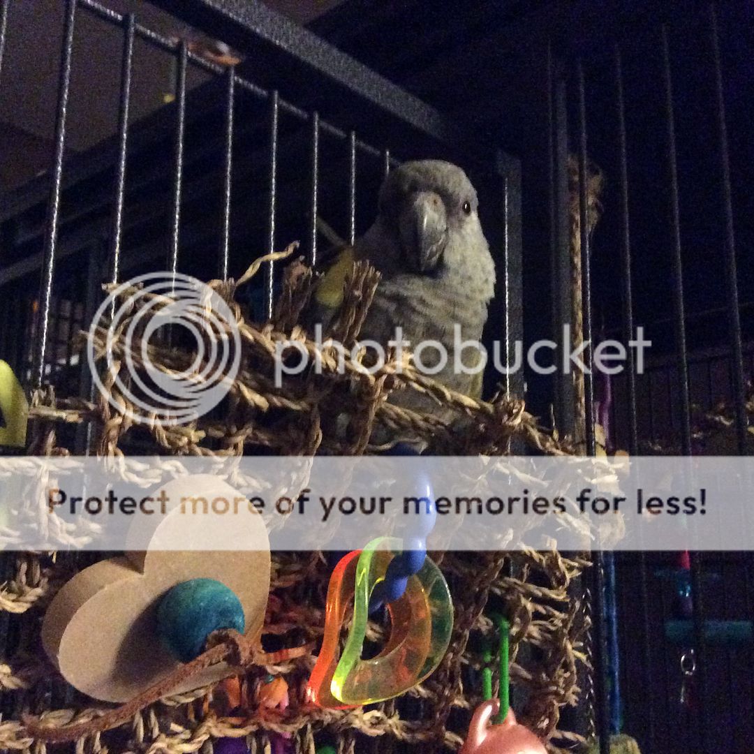 Lately, while still under his bedtime cover in the morning, usually the first sound Griffin makes is repeatedly calling his friend by name. "Raven, Raven, Raaaven? Raven??" In a tone of voice as if to say 'are you there Raven, answer me!' He has the most adorable little kid sort of voice. Of course sleepy head Raven in the next cage over never answers lol.