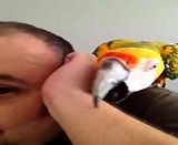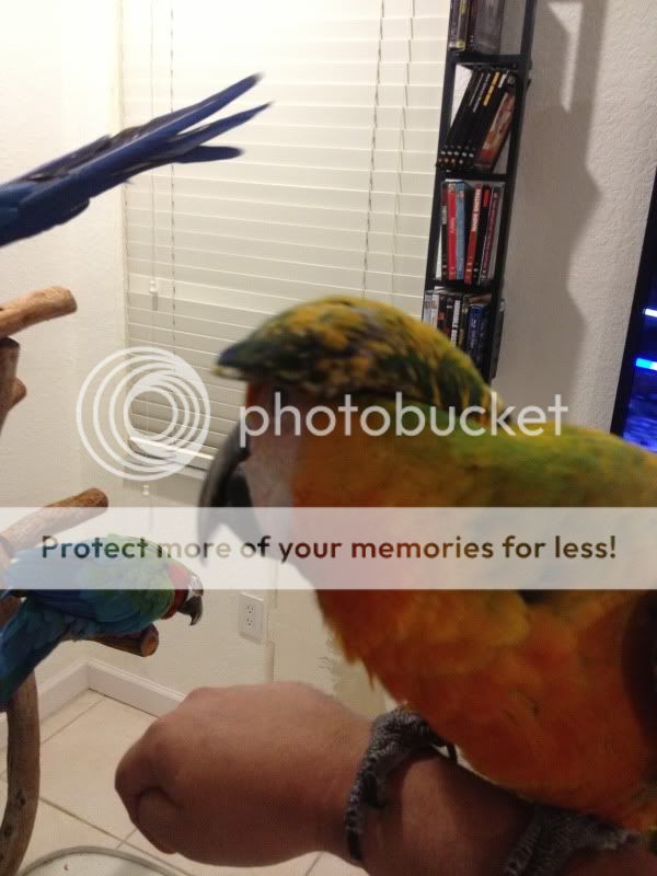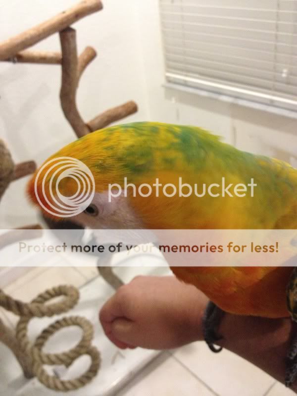 Ooooo Casper is BRAVE! It just takes once to get bit, they won't do that ever again! If you try to pick Wickett up and put him near the Amazon's cage he flips out and cries like we were going to put him in the cage with her hahahhaha.