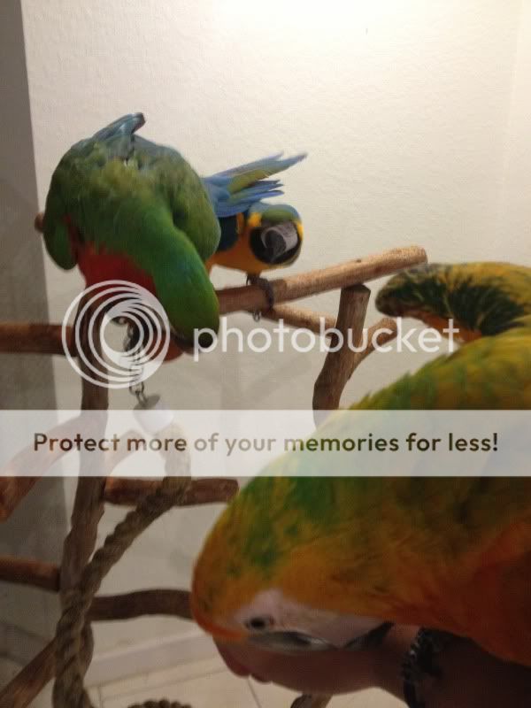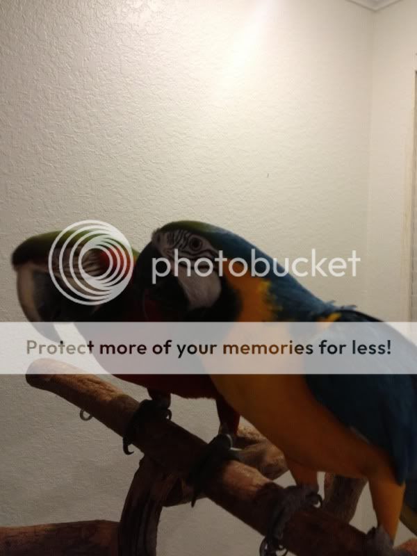 - Margret-Mealy Amazon 28 (family parrot), Petri- Peach Front Conure 4, Chloe- Congo African Grey 24 and Rio- Blue Crown Conure 4 !! :D