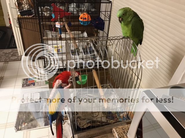 - Goofy (YNA), Oscar (Goffin 'too). Foster bird Betty (RLA). RIP Cookie, 1991-2016 ('tiel), Leo (Sengal), Charlotte (scarlet macaw). Grand-birds: Liam (budgie), Donovan (lovebird), RIP Angelo (budgie)
