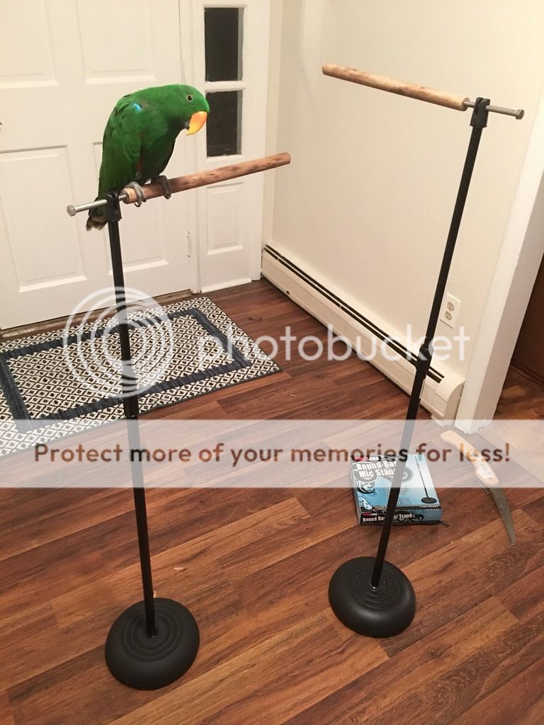 Ok, super excited about my epiphany and success. I've been wanting to start flight training with Parker, but haven't been happy with the stands out there. The only ones that suit my needs are the Parrot wizards outrageously priced stands.