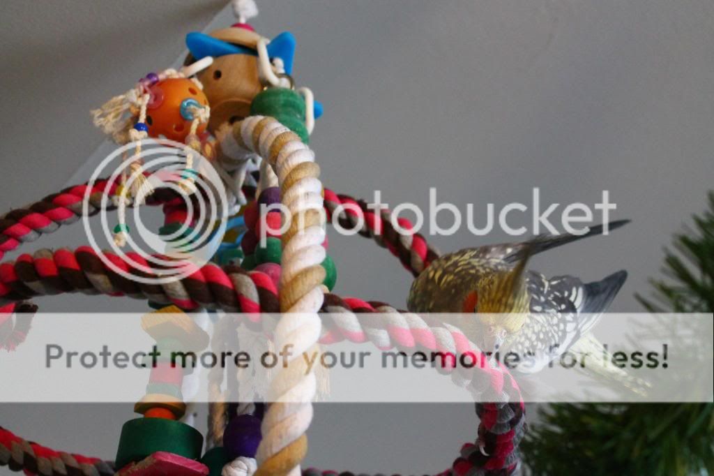 dally is comfy enough to preen herself on it and has played with their toys (they were on the old one too)