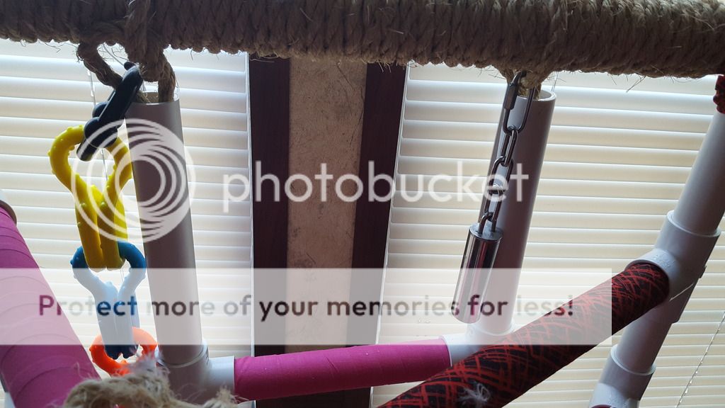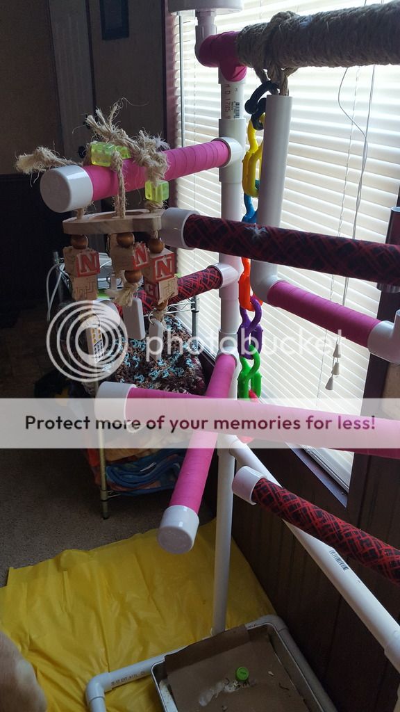 I decided to make the pretty chicken a playgym. Not too bad, if I say so myself, considering I spent all of like 30 bucks.