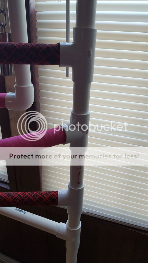 Three, it can be rebuilt if the chicken gets bored with it. I have extra PVC, so I could cut more if necessary. And really, it is less than 2 bucks for 5 feet, so I can always get more. The connector pieces are what is expensive, but even those are only a buck or two. I think the most expensive part was the sisal I got to wrap the top perch and make the swing out of.