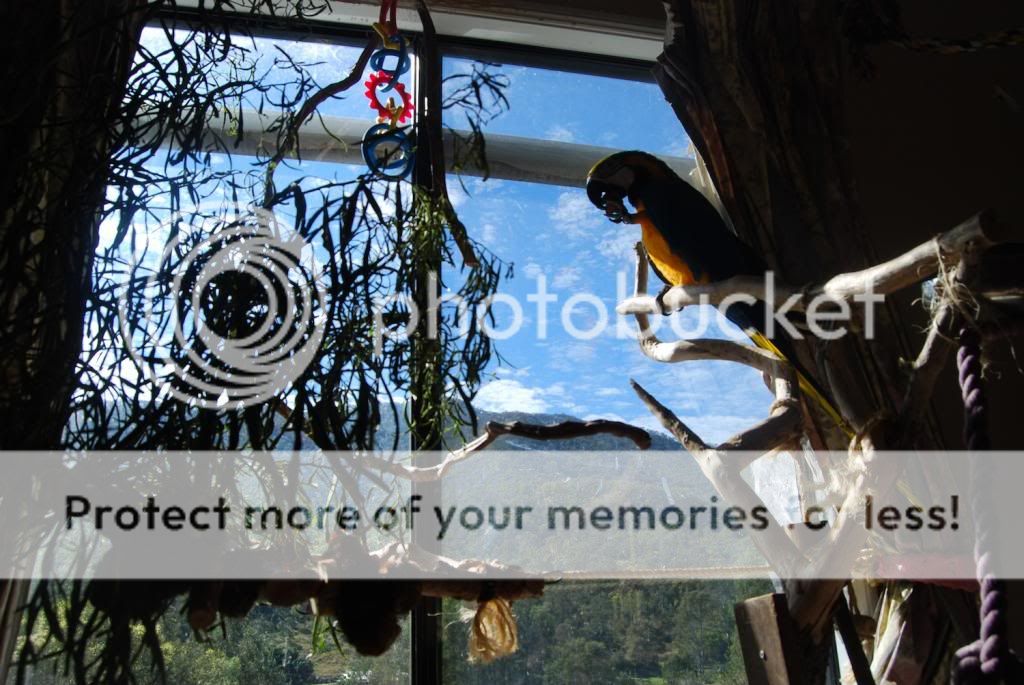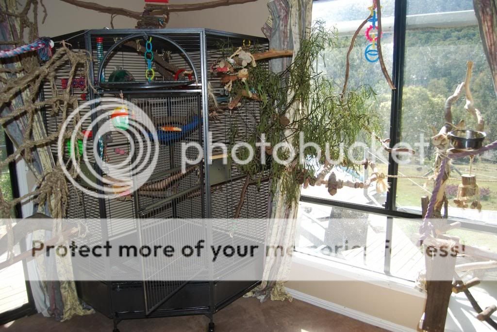 The cage! The java perch sits off that, so he can sit there and look out the window