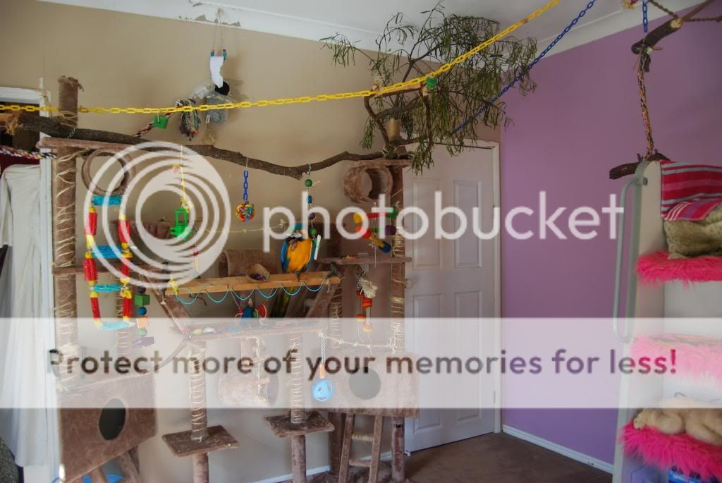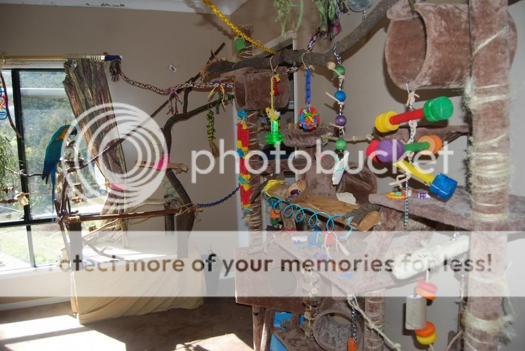 Then his gym, it has all his foot toys, he just chills there and chews on everything! Then a ladder which connects chain to the gym, he loves to sit on there at night time before he goes to sleep