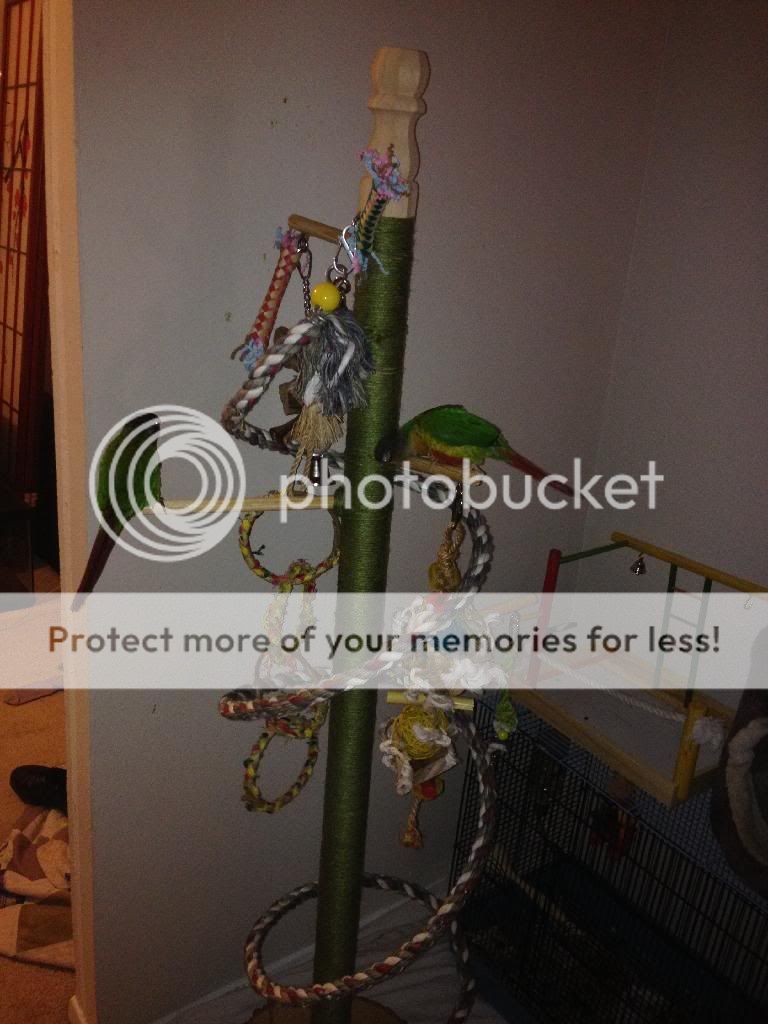 So after seeing pictures and watching videos, I was really inspired to make one for my conures, since they love their boing so much I figured it would be easy to get them warmed up to a stand.