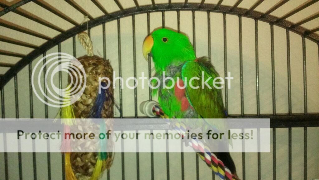 Sooooo, today somebirdie got a bath...:54: but I don't want to name names or anything, but he didn't like it very much. It was much needed though. It's hard to tell in pictures because of the flash/no flash difference, but I can tell his feathers are looking brighter already just because he's actually been eating good food.