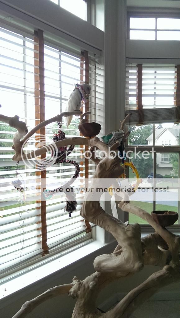 I love the giant java tree in the window. I originally intended to do that with Alice's tree so that she could watch the world outside, but the world outside currently ranks as terrifying and dangerous so we've had to retreat for the time being... It must be great for most birds though.