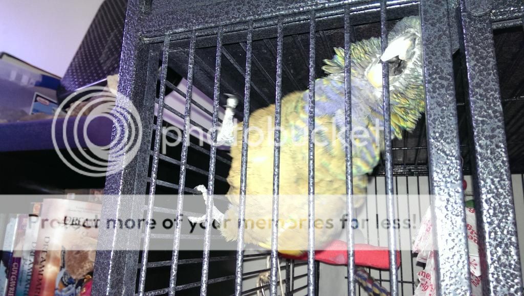 Our first foster bird is Jalapeno, an amazon, who I think my parents renamed him Palo since they didn't like the name. He has been doing really well already since they just came home last night. He is already accepting head scratches when before he would think you were about to strangle him