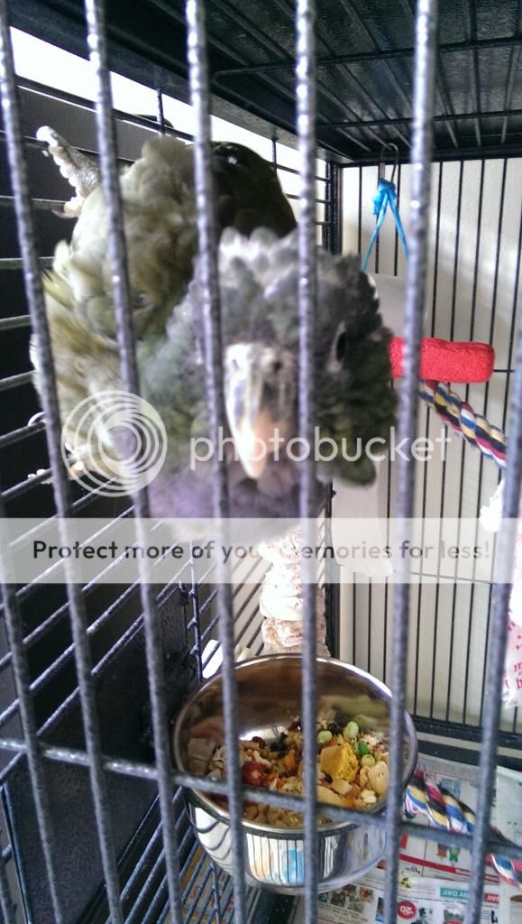 We have officially become foster parents to two birdies from A Helping Wing. This is the first time they have trusted someone to foster and work with some of their birds. These two are up for adoption but since they have been a pair and are a little flighty no one has shown true interest in them. So we have separated them since they are not a bonded pair and they will be adopted out separately since we think it will be easier to find adopters for them that way.