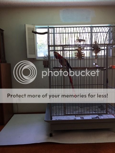 . He just sits in or on his cage shouting "get off my lawn!" .