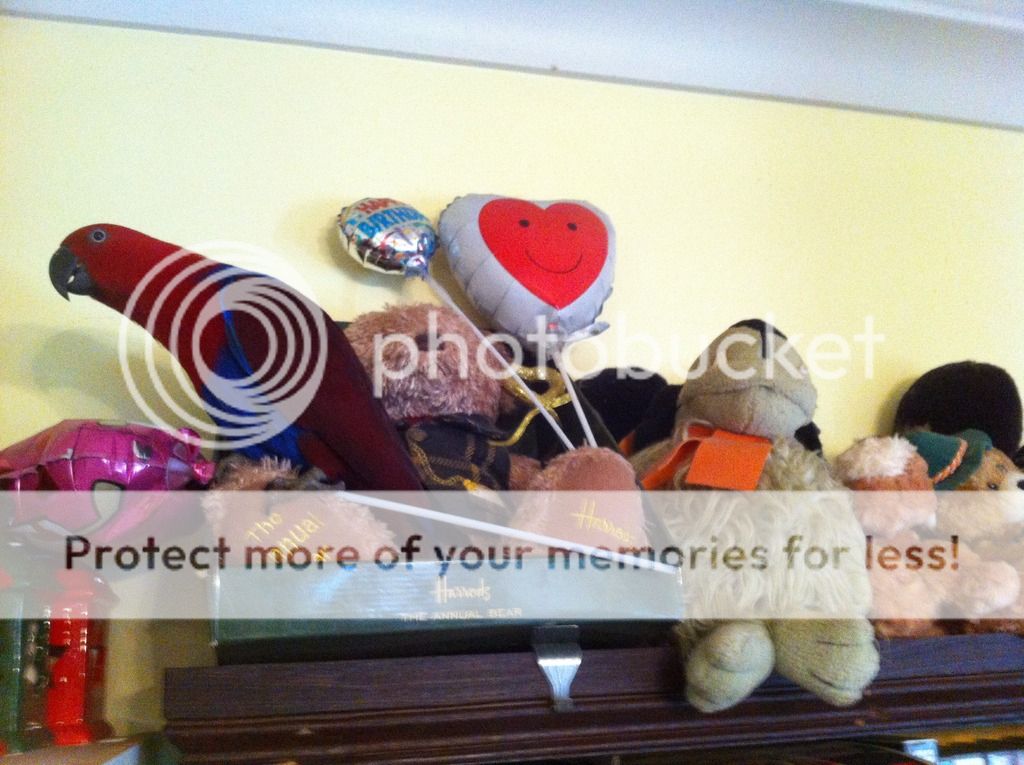 Today, I'll be honest, she had me really worried. I left the room for literally a minute and heard Gizmo and Pebbles flapping around, so returned to check on them, Gizmo was on the cage, and Pebbles had disappeared. At first I was fairly calm, and just looked around the window, on the fruit bowl, etc, etc, but eventually I ran out of places, slightly concerned, I then looked behind the cages, then between the book cases....no Pebbles. I went into the kitchen, checked around there...no Pebbles. Now I am starting to get concerned, I pulled the fridge out and looked behind. By now I had no idea how it had happened, but I was certain she had somehow gotten outside, I rushed Gizmo into his cage, and went to the cupboard to grab the almonds, as I closed the cupboard I heard a noise above the bookshelf........