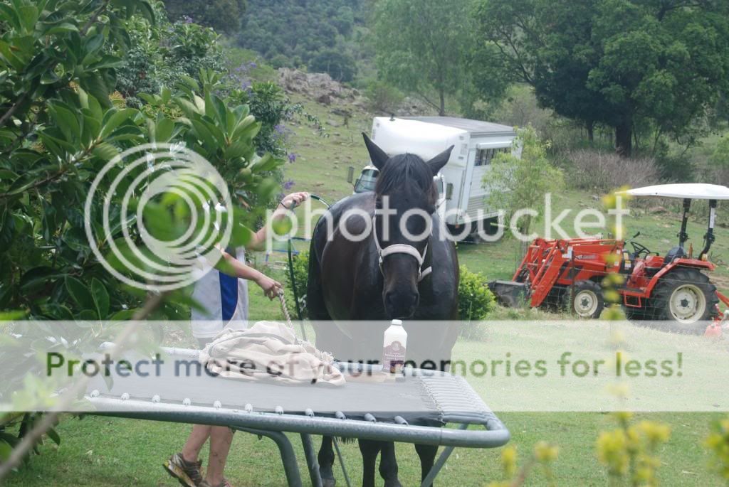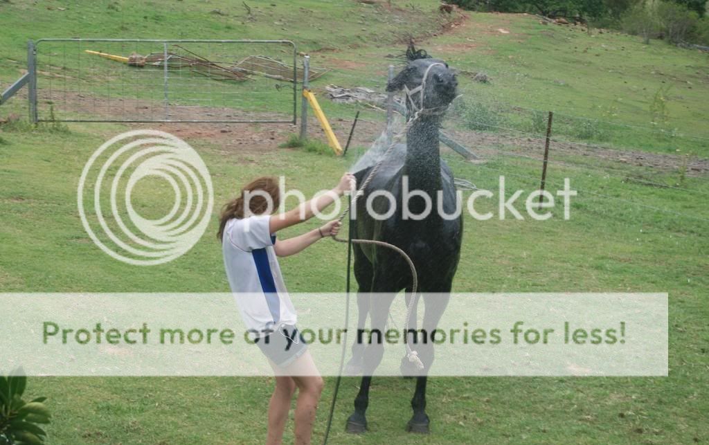 But Kyros just hates his head being done, and i was trying to put the hose up like it was raining.. And he pulled his head up.. and he just got a face full of water hahahaha Silly horse!
