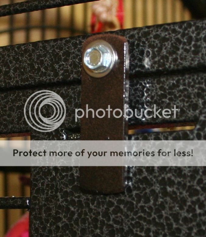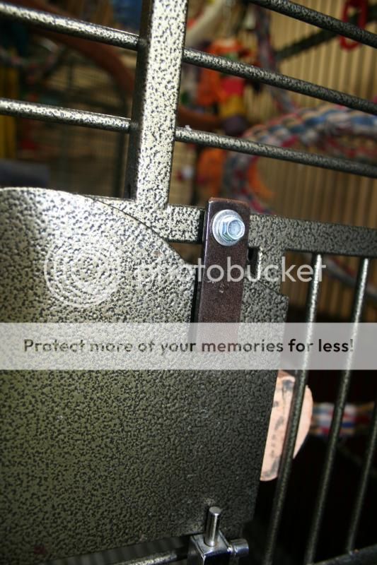 Then my little Engineer in the making (my son Mark) came up with a BRILLIANT idea. He went to Lowe's, bought this long stick of metal, cut it, drilled holes, he got ALL the hardware, and he even installed his contraption for me....on BOTH cages.
