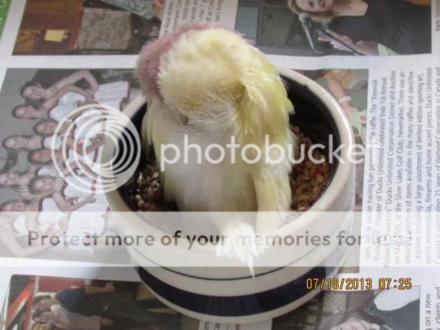 3. Bird perched low in the cage or on the floor.