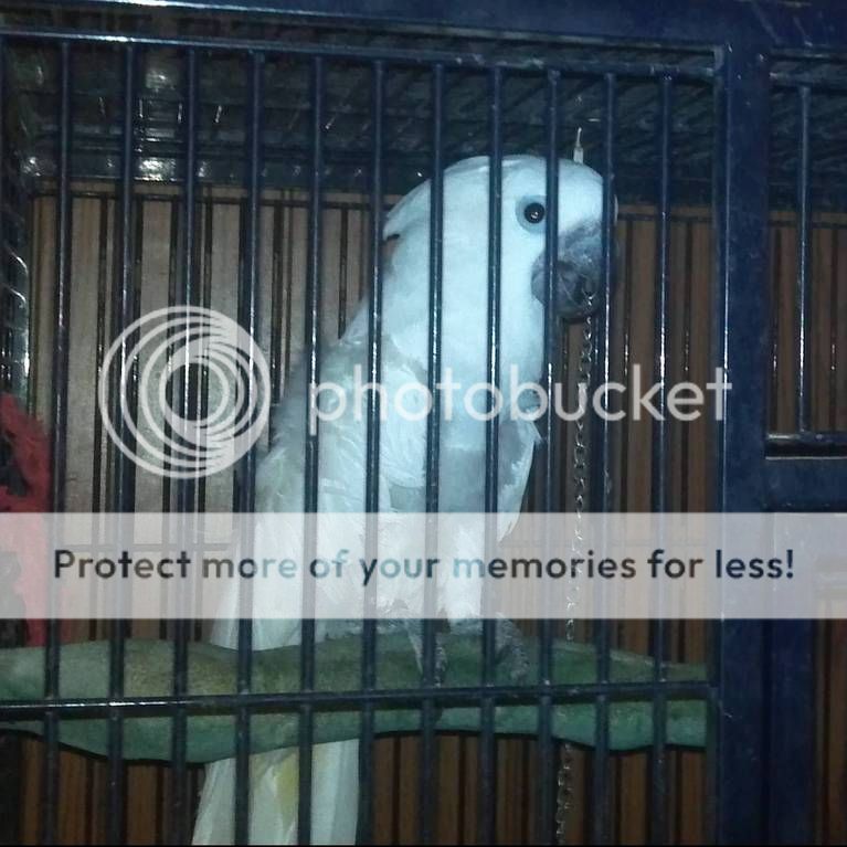 My friend (the owners sister with no bird experience) ended up taking her just to get her out of there, about a month ago. On Tuesday, my friend again asked if I could take her. Peanut chewed her xbox cable and she is not a big bird person. I thought about it and talked to hubby and decided we would take her. I did NOT want this beautiful bird to end up back at her sisters! We got her on Friday. She is so sweet and funny! I have been reading everything I can on Umbrella Cockatoos since the beginning when I was suppose to get her. I have continued to read about them, even though I didn't originally get her, because I am intrigued by the difference in them from other parrots. This was not a decision that was taken lightly! I am taking it slow with her but so far, she seems very happy! She is talking, dancing, singing, taking treats from us. Amazingly enough she has not plucked herself despite being covered all the time and little to no attention.