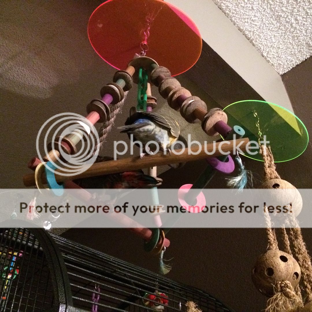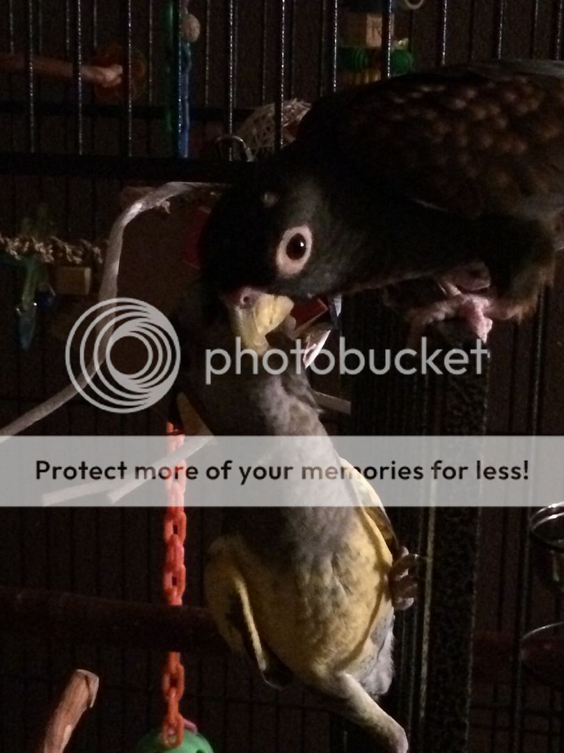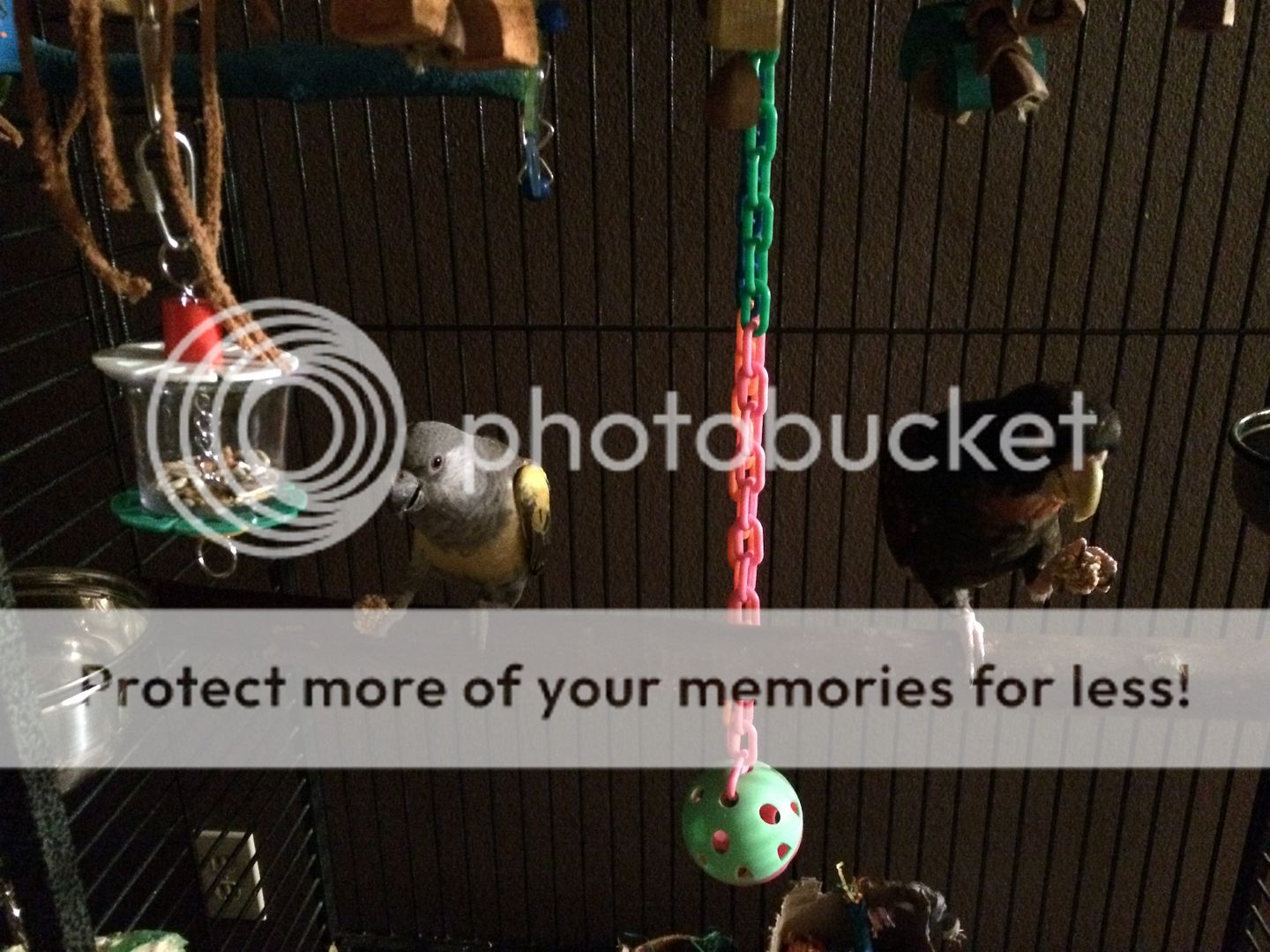 Here are Raven and Griffin. Out of the 4 birds, they are the ones always up to the 'stunts'. Griffin always hangs and swings like a little monkey, and always has his legs far apart which is hilarious, but unfortunately I haven't been able to capture the moment yet. Enjoy!