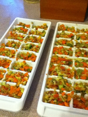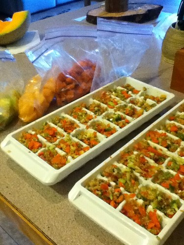I also made little fridge baggies of pre-cut apples, carrots and cantaloupe so I can throw them in fresh each day with the rest of his chop.