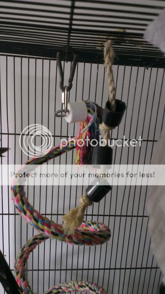 This is my rope selection. I have sisal rope, cotton rope, paulie rope and some shiny fluffy rope which my fid loves to preen. You will see very thick sisal rope on the right - not sure yet what I will make with it but I couldn't resist it! All of these I bought at a local hardware store.