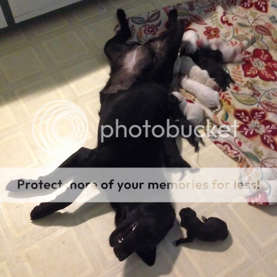 We raised one litter of pups with them before we had her spayed. This is Dixie on drugs with pups less than 2 hours old.