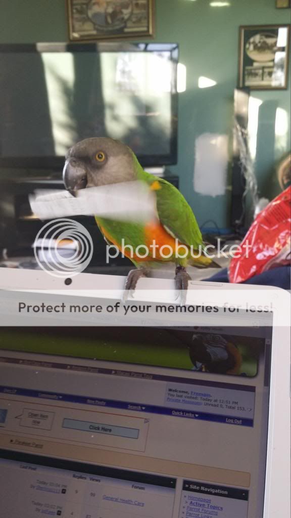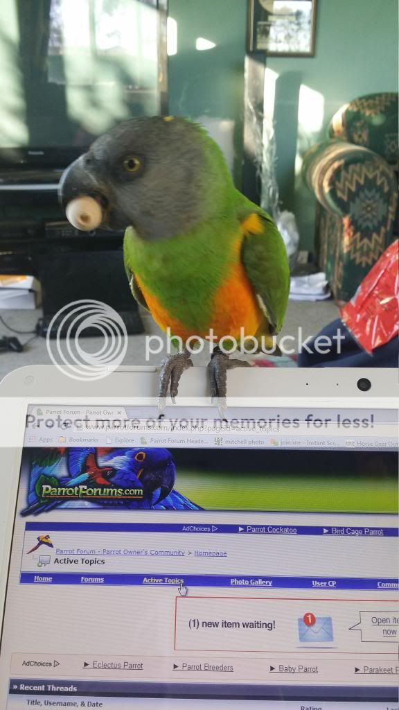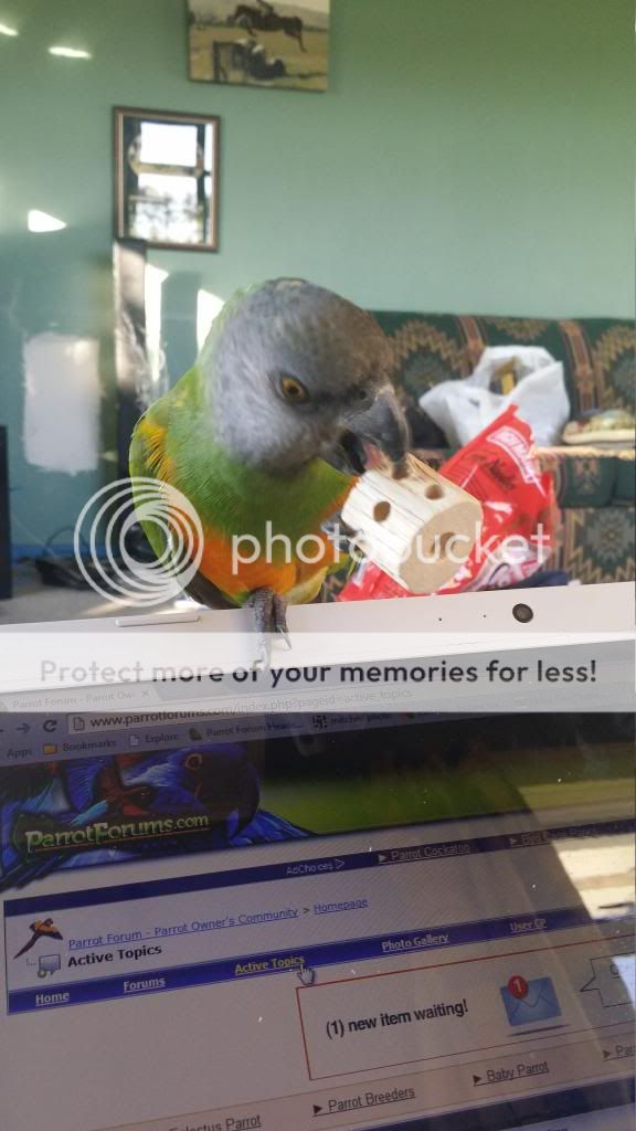 Trying to keep the little brat entertained when he decided to sit on my computer... After throwing a few toys back at me, chewing on my laptop and then biting a little when asked to step up i decided it was a good time to try to get a couple of good "step ups" and then put him away again.