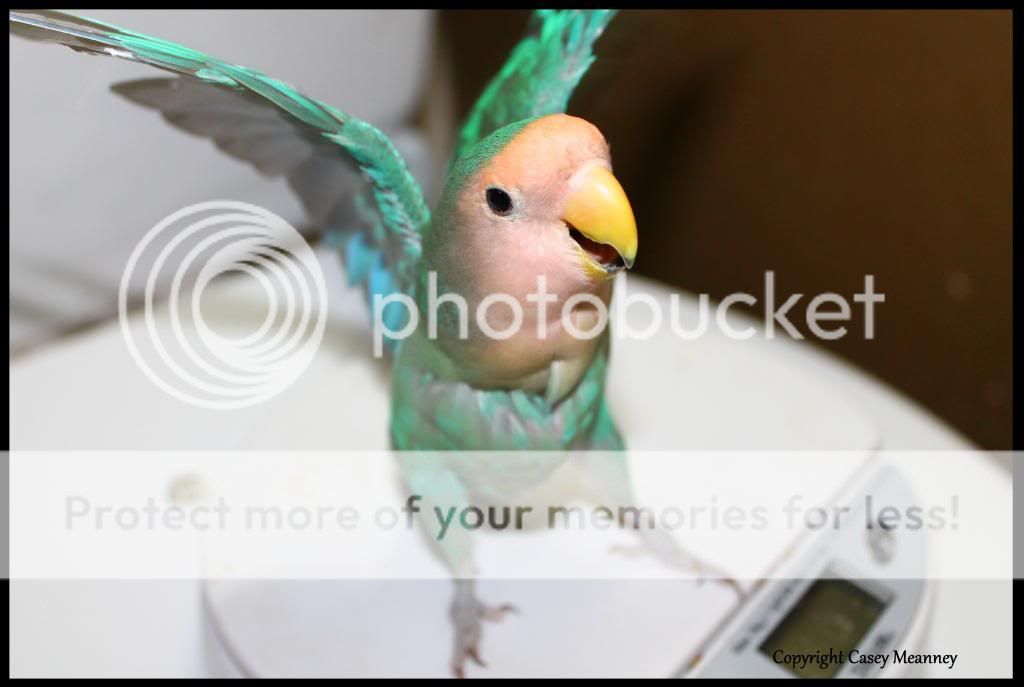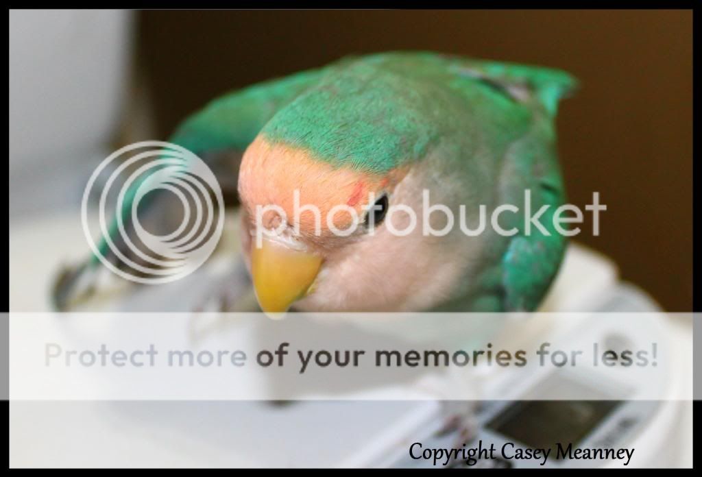 We are weighing Munch daily right now as she is on eggs and is not eating as much as normal due to sitting all day. So, we have bonding moments daily during her weighing and she handles the scale very well (she bangs her beak on it to claim it as her territory!!). She looks a bit rough, but molting, nesting, and a bit of plucking doesn't help that. She also got strawberry on her forehead lol She's doing great in weight!