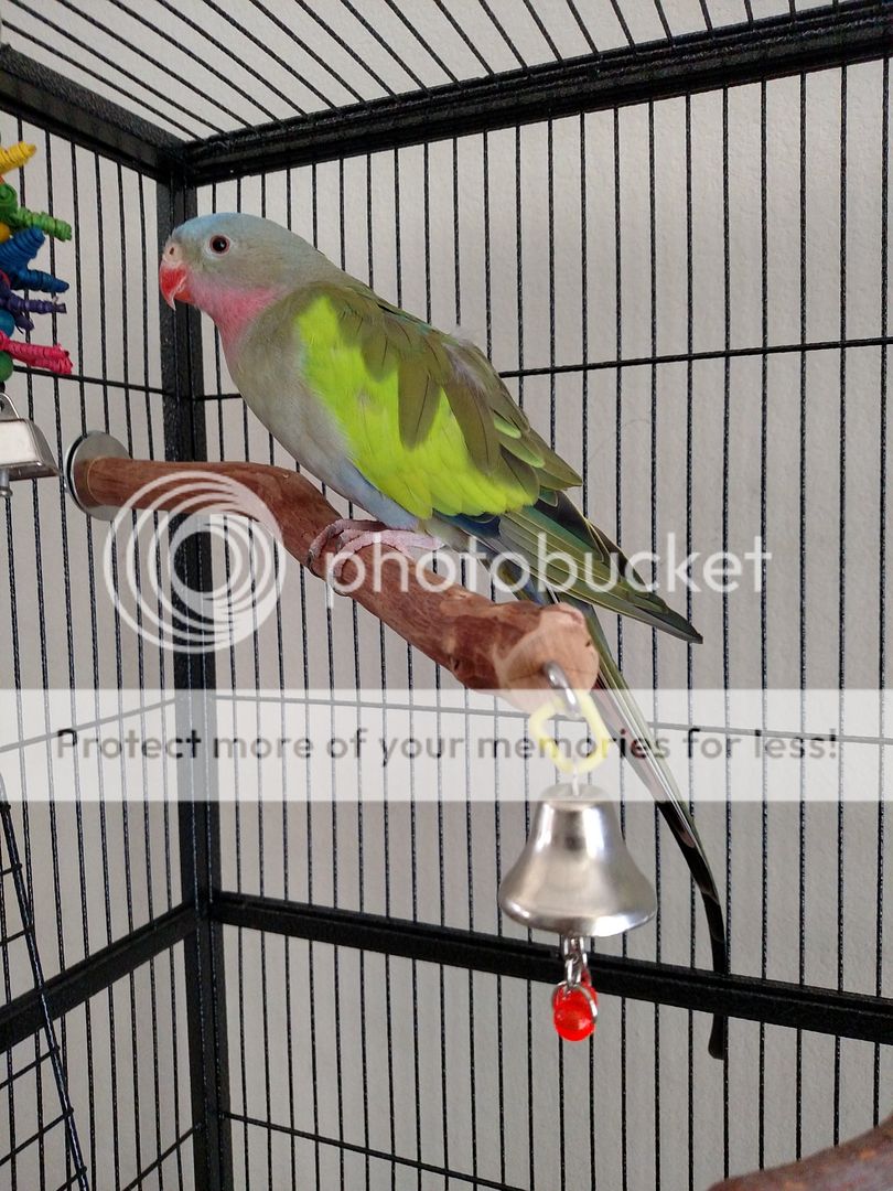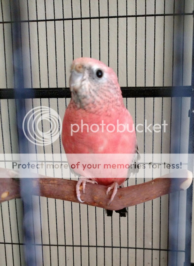 This is Pinky, a rosy mutation Bourke's parakeet. He's not too active, but is a sweet little guy. He's the boss of Patches.