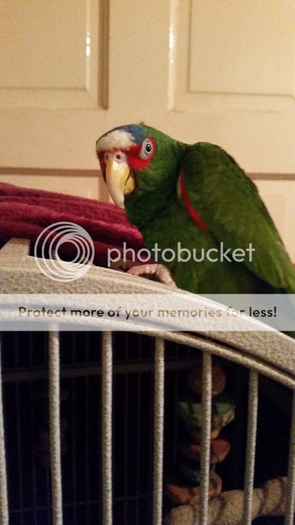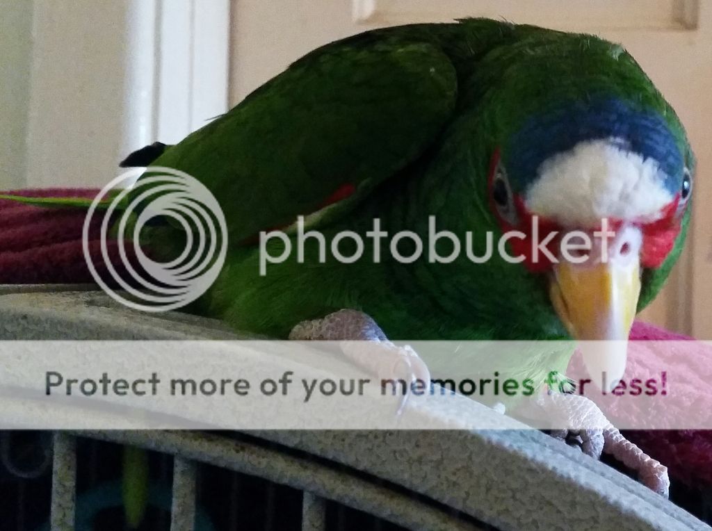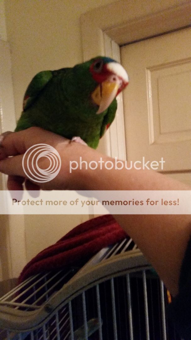 I have tried a rope perch to the open door from inside the cage and leaving him to see if he would come out by himself but no joy he still remains in his cage...however when I now take him out he is happy to linger for a few minutes longer on top of his cage before hurriedly wanting to get back inside and the getting back inside but is less of a panic than it was...he is still in a hurry back though when the humour hits him and uses his wings to tell me he has had enough and its time to go back home to his cage. I also hung a swing for him from the ceiling just to the right of his cage and though I have placed him on it still on his perch held in my hand (as he wont so far step off onto the swing)a couple of times he just immediately flys back to the cage top again. I also tried one of the new toys again in his cage but he was still frightened of them so I removed it again... it is hanging at a little distance from the cage where he can see it and get used of it but isnt intimidated by it. He is busy doing his flock calls as I type. He is a very bad to no veg and fruit eater though which needs to change in order for him to be healthy and I have tried all the methods suggested here in this forum and nothing is working but today I plan to just eat in front of him hopefully with him sitting on my arm or the side of the plate...it will be his fruit and veg we will be eating but we wont tell Mr Biggles that