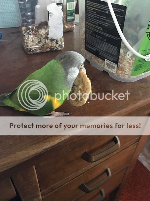 So Kane, my almost 6 month old male Senegal parrot eats everything. And I mean everything. At first I thought this was a good thing because I had no problem switching him to Zupreem natural from the fruit pellets he was weaned onto. He eats all his fresh veggies, fruits, whole grain everything, so he is very easy on that front. But he will eat anything and everything you're eating or that you leave out, and he does it quickly! He ate half a piece of pizza once in literally under 3 minutes once. I've learned not to get up and walk to the kitchen for anything while I'm eating because my plate will be half eaten when I get back, guaranteed.