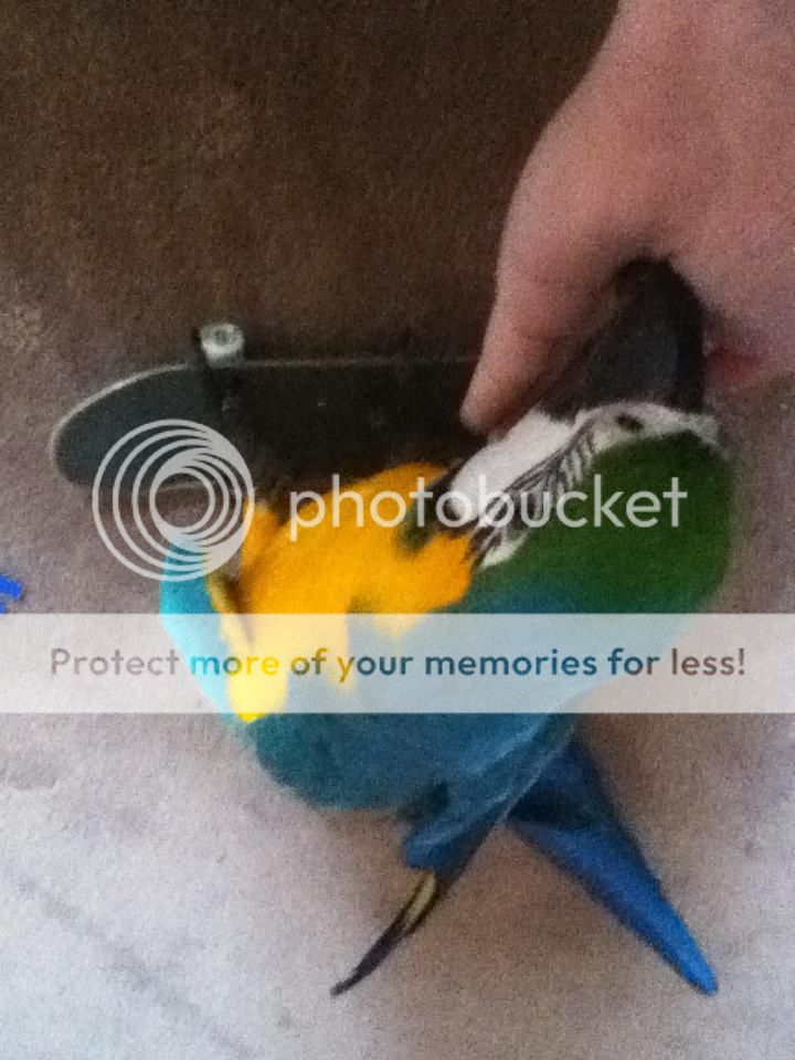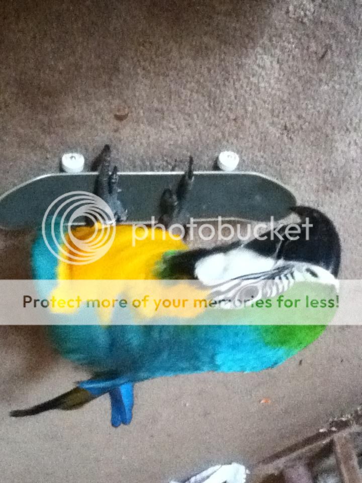 I don't want to just slide him down a ramp without him being comfortable on the board first. Does anyone have any tips on how to keep him on there? He doesn't take treats when perching, only when he's sitting relaxed on his cage. I use to put seeds on the board and have him eat from it to get him comfortable enough to perch on it in the first place, but there's no way he'll take treats when he's on the board, so it's hard to reward any desired behaviour.