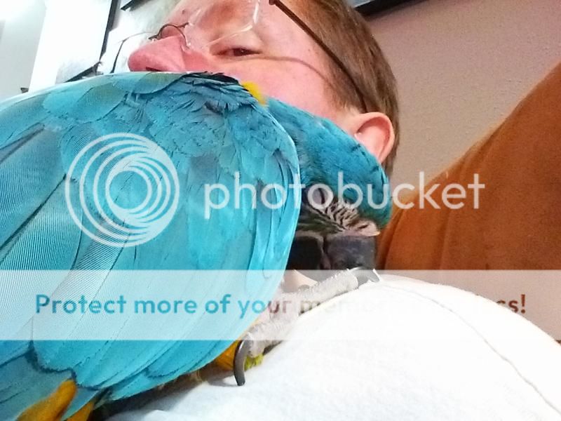 Loki loves sleeping in his snuggle hut and often cuddles up to his toys, tucking the strings/chains they hang from under his wings. But when it comes to burrowing in his humans' sweatshirts like I see pictures of, it's not his cup of tea. Now, head scratches, on the other hand, he will take all day long.