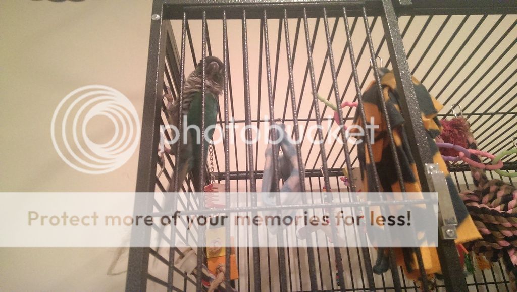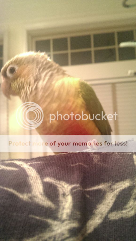 My green cheeks who are majorly unhappy with me because they didn't get out all week until tonight.... Monkey flew to my shoulder and complained about the whole ordeal for quite awhile....