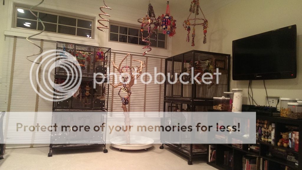 I'm in the process of working on the bird room, which will serve as a flight room with perches and toys for play time, as well as hold their cages..... I just figured out, the room is to small for all the cages.