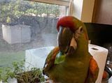 Chicka decided she'd help me out with my little "herb garden" on my kitchen window sill. It was fantastic that she ventured so far from her cage but my poor parsley paid the ultimate price