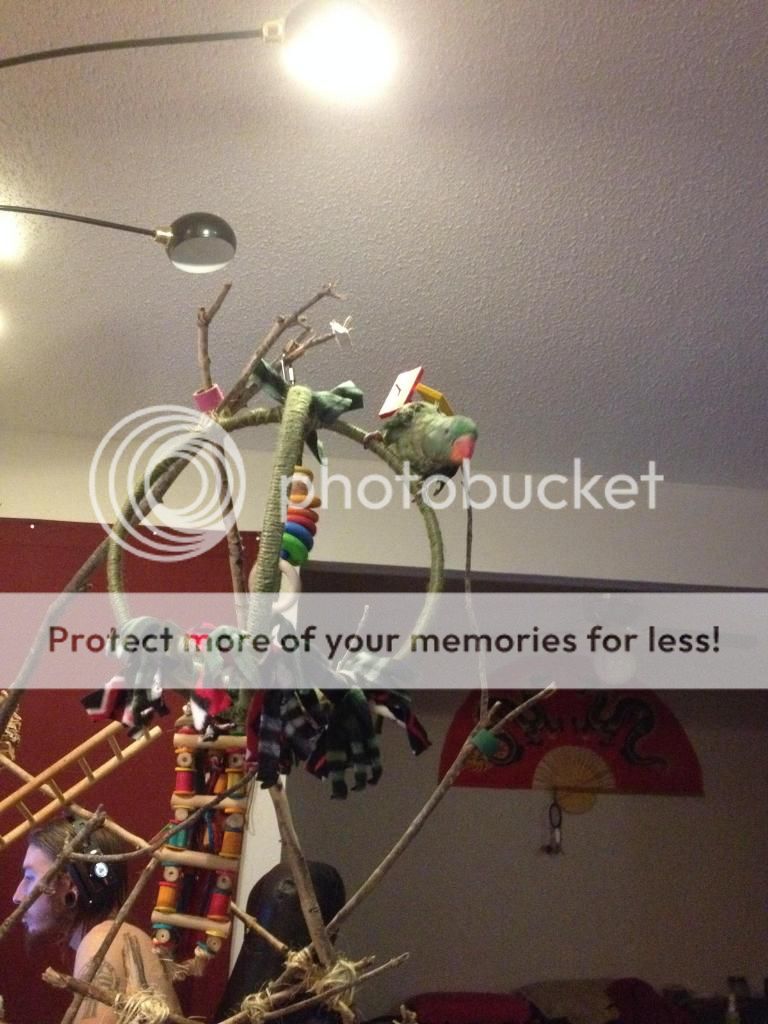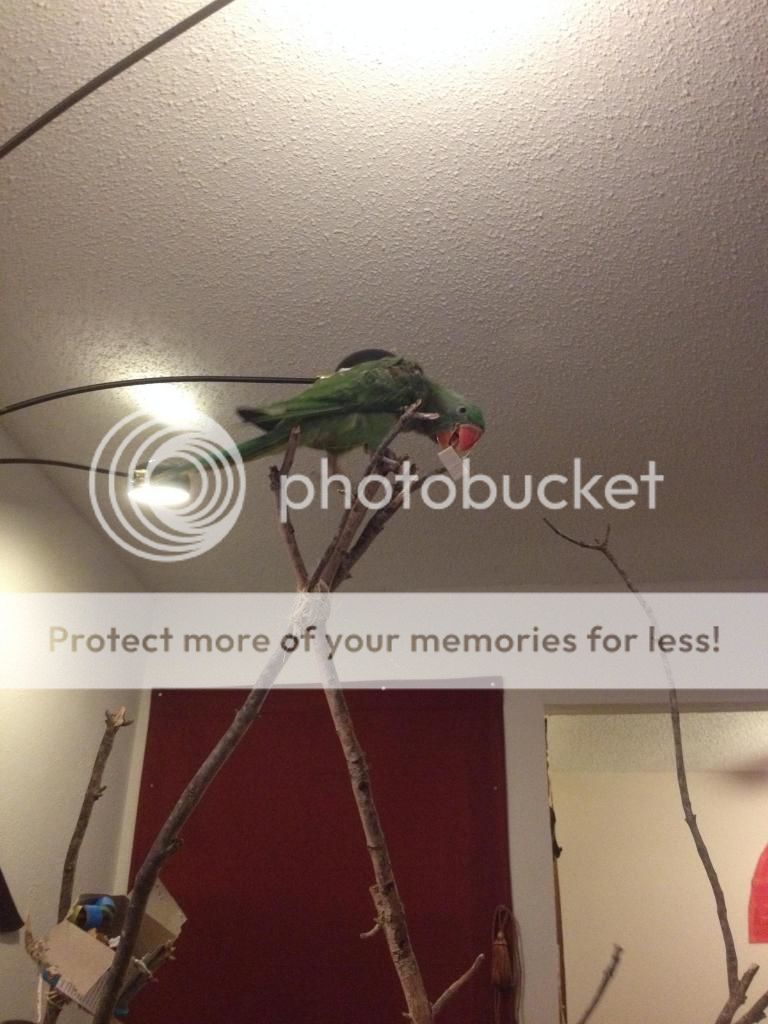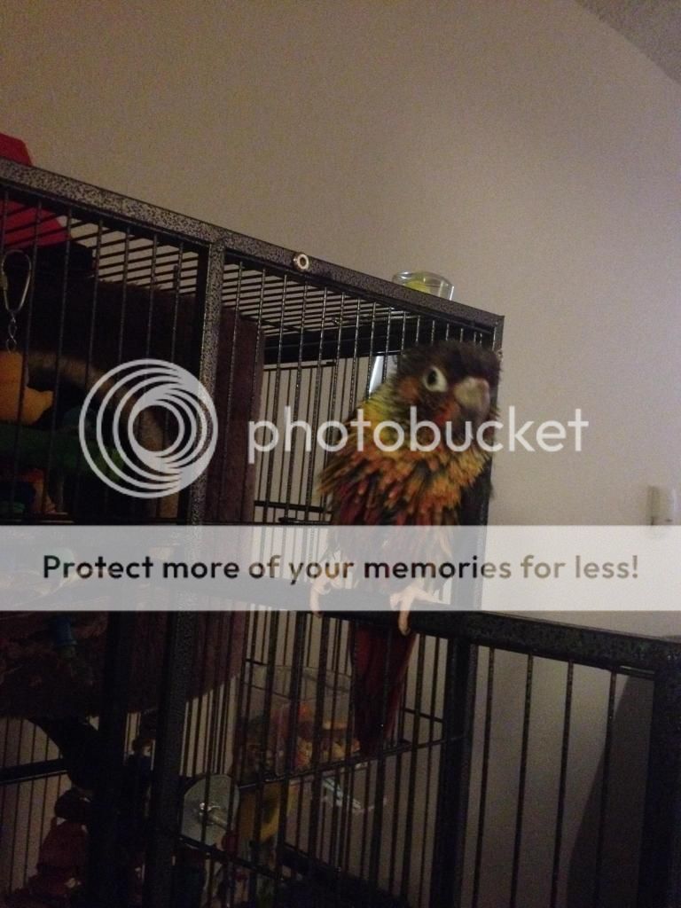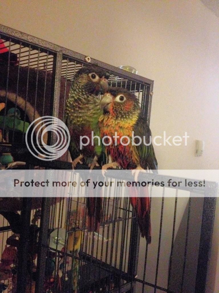 The conures after bath time.. (put a dish of water in their cage, they go crazy.)