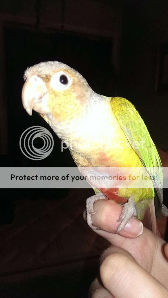 And last is Monkey! She has laid 4 eggs so far and is on her 5th one. I have let her keep the original eggs and am candling them to make sure they are not fertilized. She is sitting them but first she pushed them out of the nest a couple times, rearranged all the bedding, cracked one of them, and completely ignored them for the first week. I guess she finally figured out she is supposed to sit on them and she also plucked feathers to sit them of course. My vet said not to worry about her unless she is laying more then 6 every year since she is healthy. I got a picture of her since she decided to come out and visit since I've left their door open the last couple hours for Monster to come out. Monkey is still very friendly. I'm guessing the fact she is pretty bonded to me has helped!