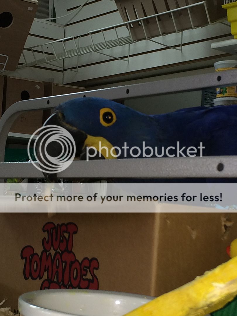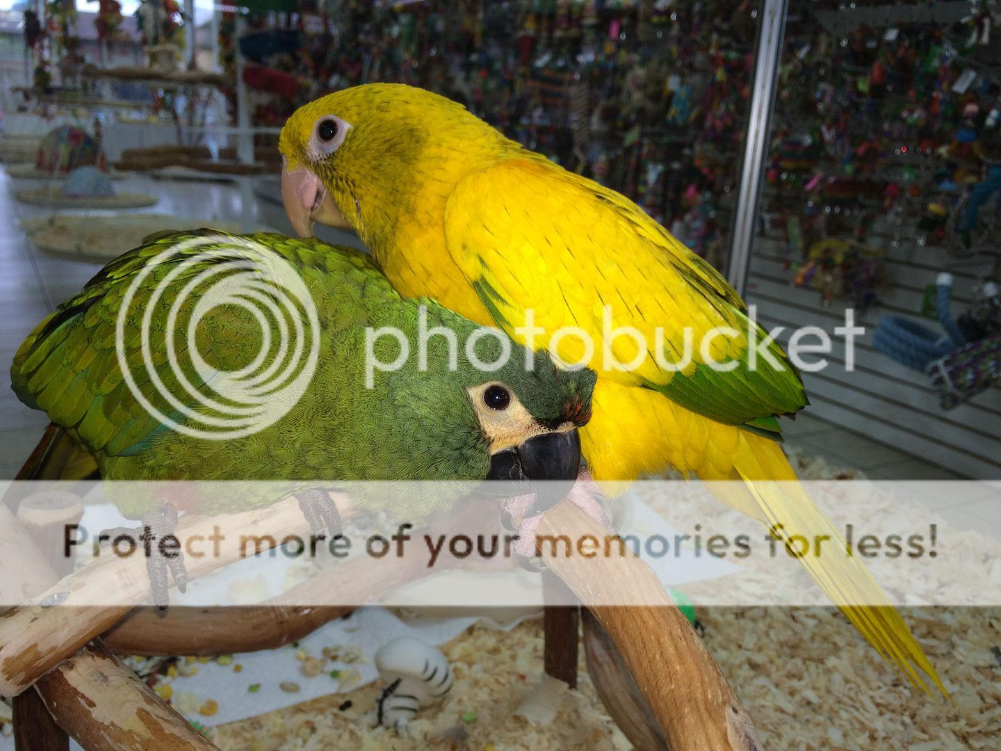 ...and just for fun, Illiger's Macaw, Golden Conure, and Hy... This store owner breeds most of these birds that he sells.
