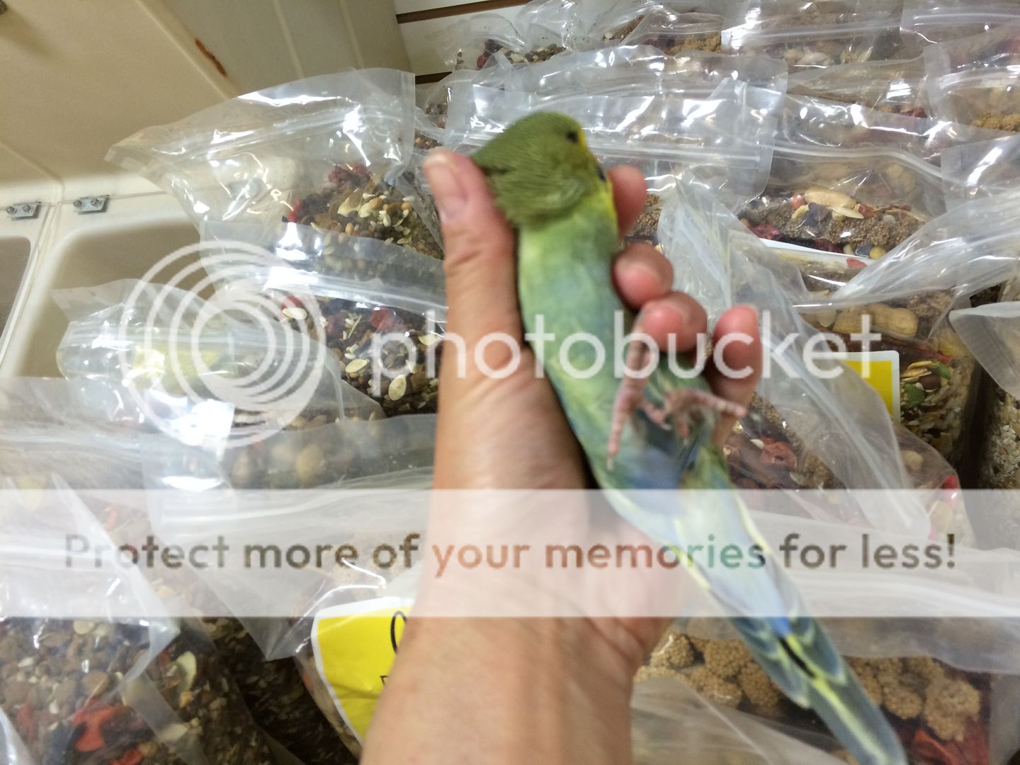 This bird was weaned this week, but they won't let it go home without waiting a week longer (to make sure it's eating well, and keeping weight on). I LOVE that!! How often do you hear of a store that does that?! Omar's Exotic Birds. He has 4 excellent stores in SoCal (one franchise).