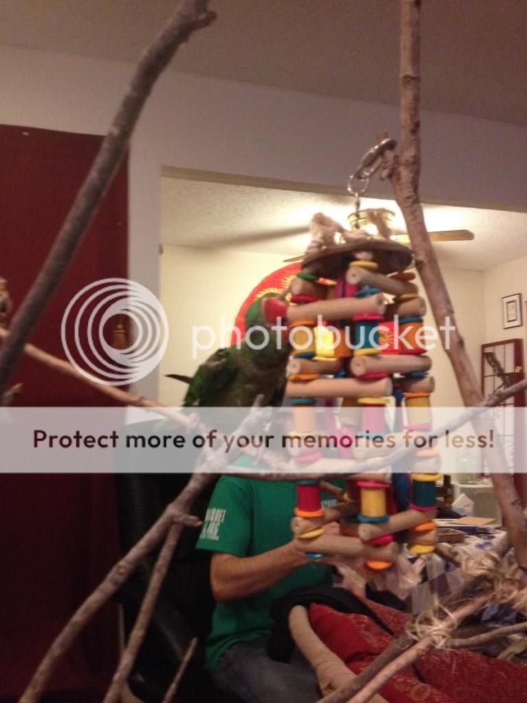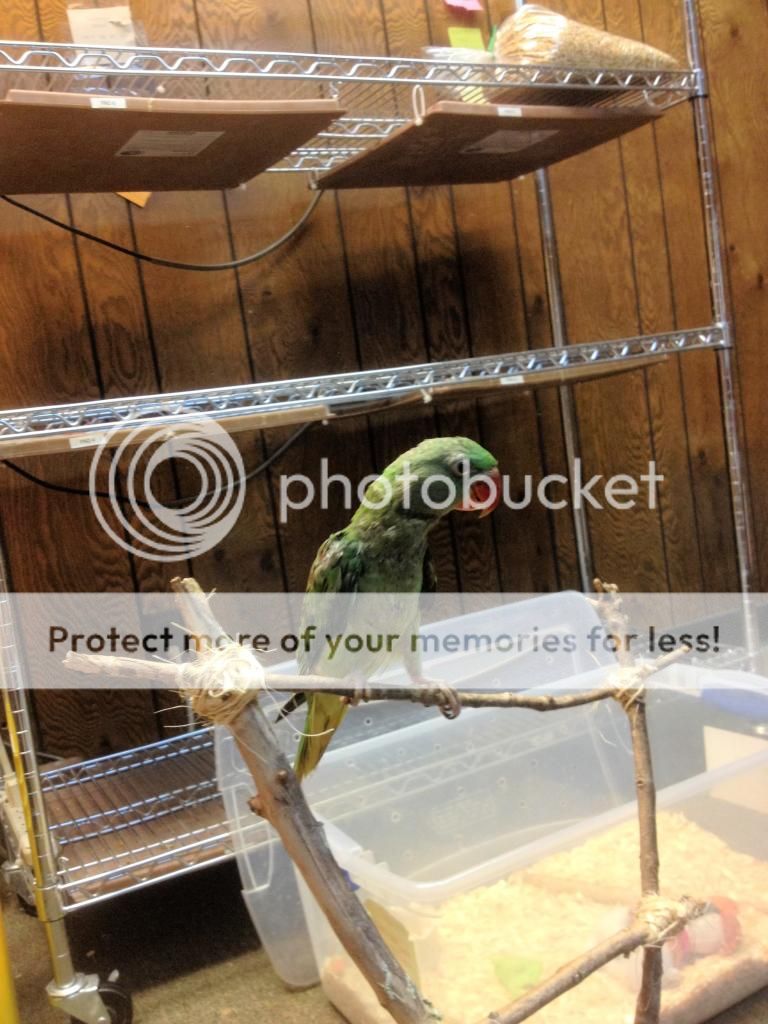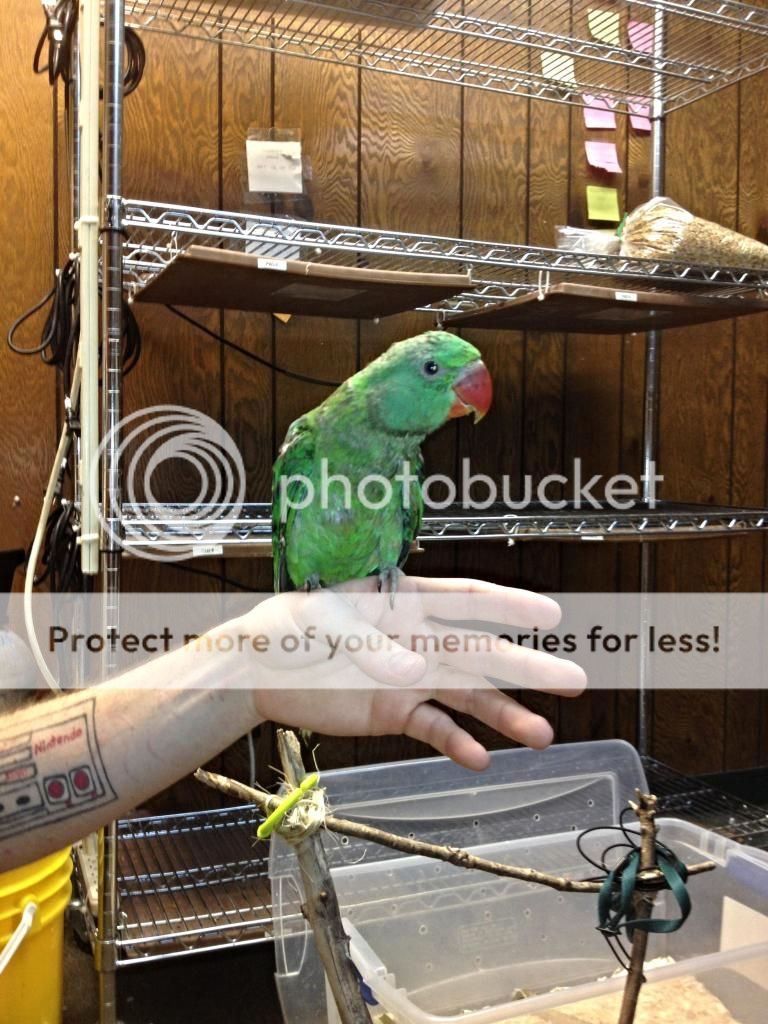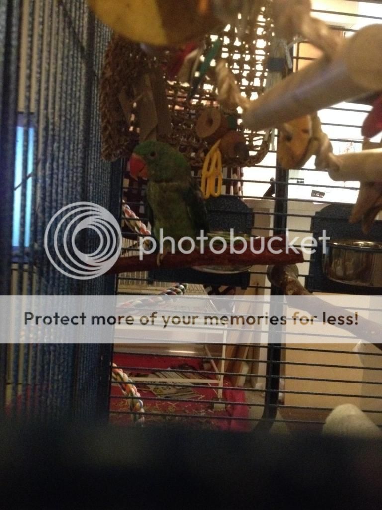 I haven't mentioned her yet, but she came home today and she's settling in wonderfully. Is totally fearless and loves any toy she can get her beak on! She is also DNA tested female.