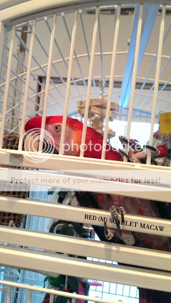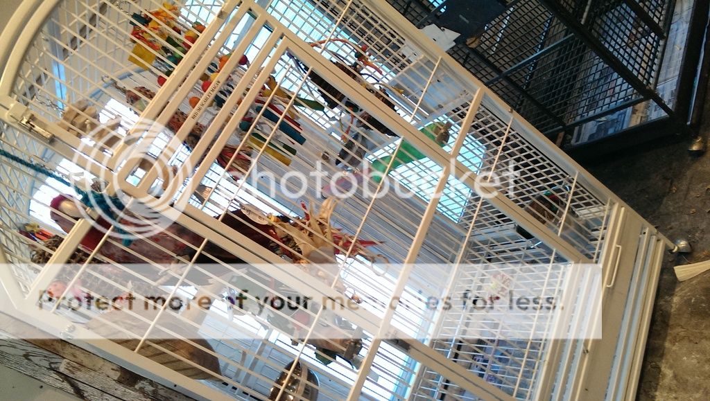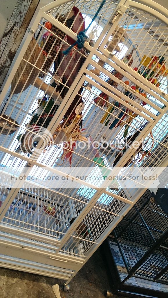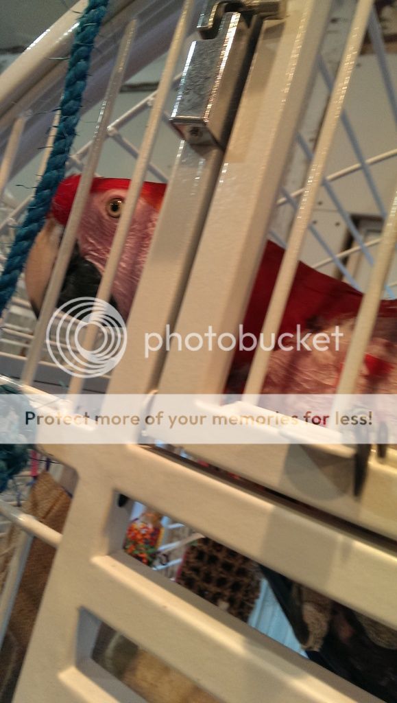 Gave him lots of toys to try and help a bit with the plucking going on. A bucket of foot toys since he seemed interested when I was handing them to him. And added a high perch so he can give people an even harder time about coming out:54: