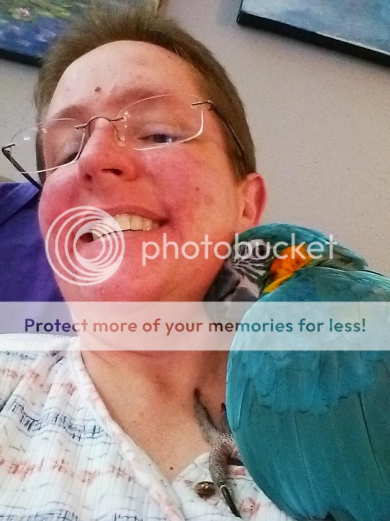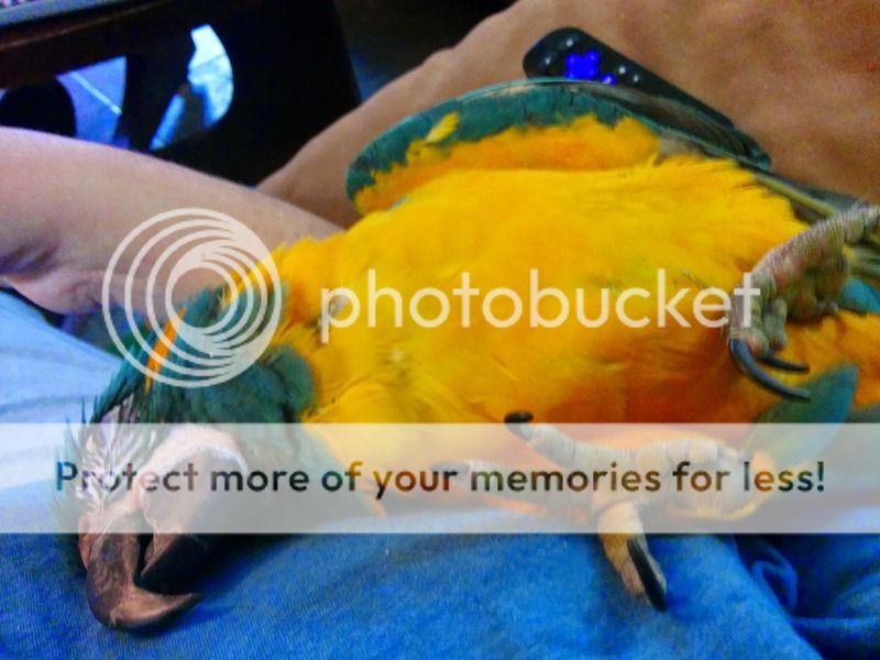 so i bought a flight suit. and again followed all the videos on how to properly get skittles adjusted to it, i wore this flight suit pinned to me during all our play times for weeks, but the minute it went anywhere near him he flipped. and being a fully flighted bird the one time he flipped he flew into the microwave and bruised his wee beak.